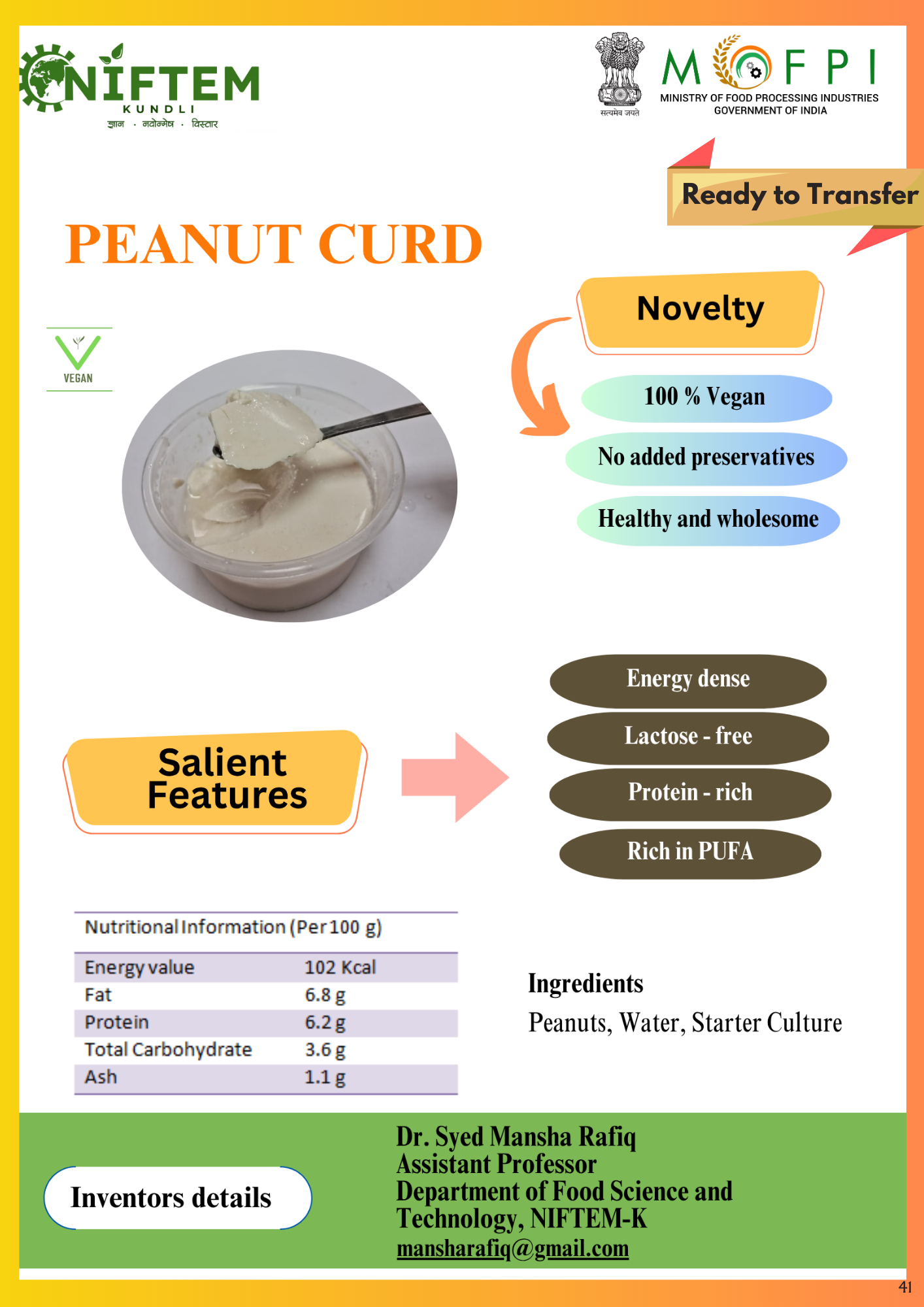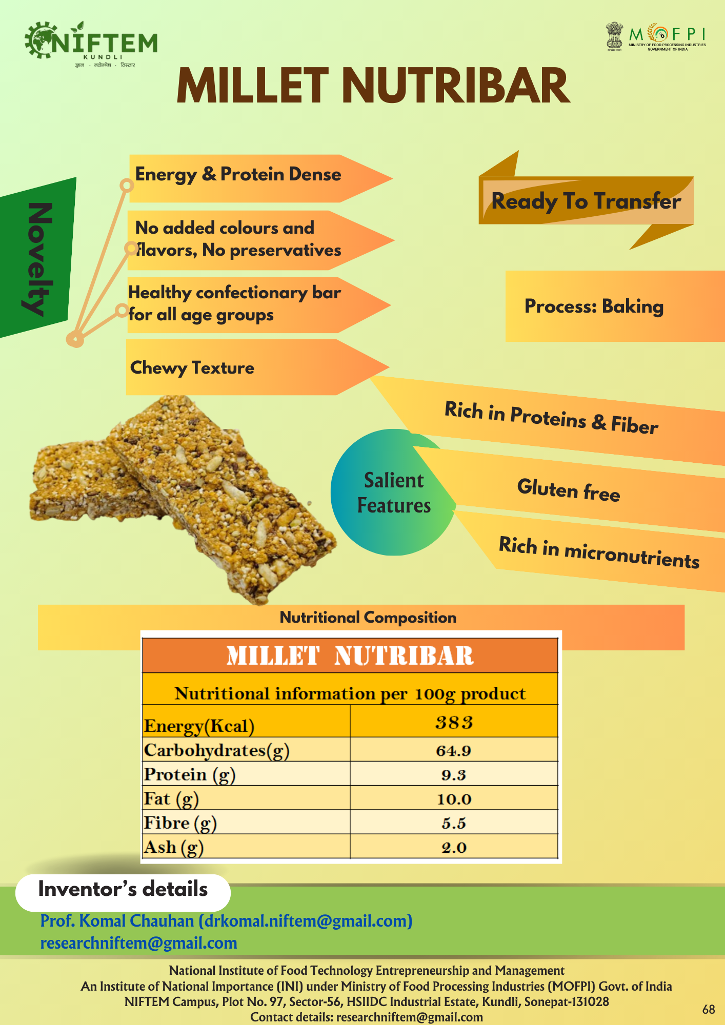 1.Cookies using malted foxtail millet and lentil flour Protein-rich granola bars 2. Protein rich garnola bar