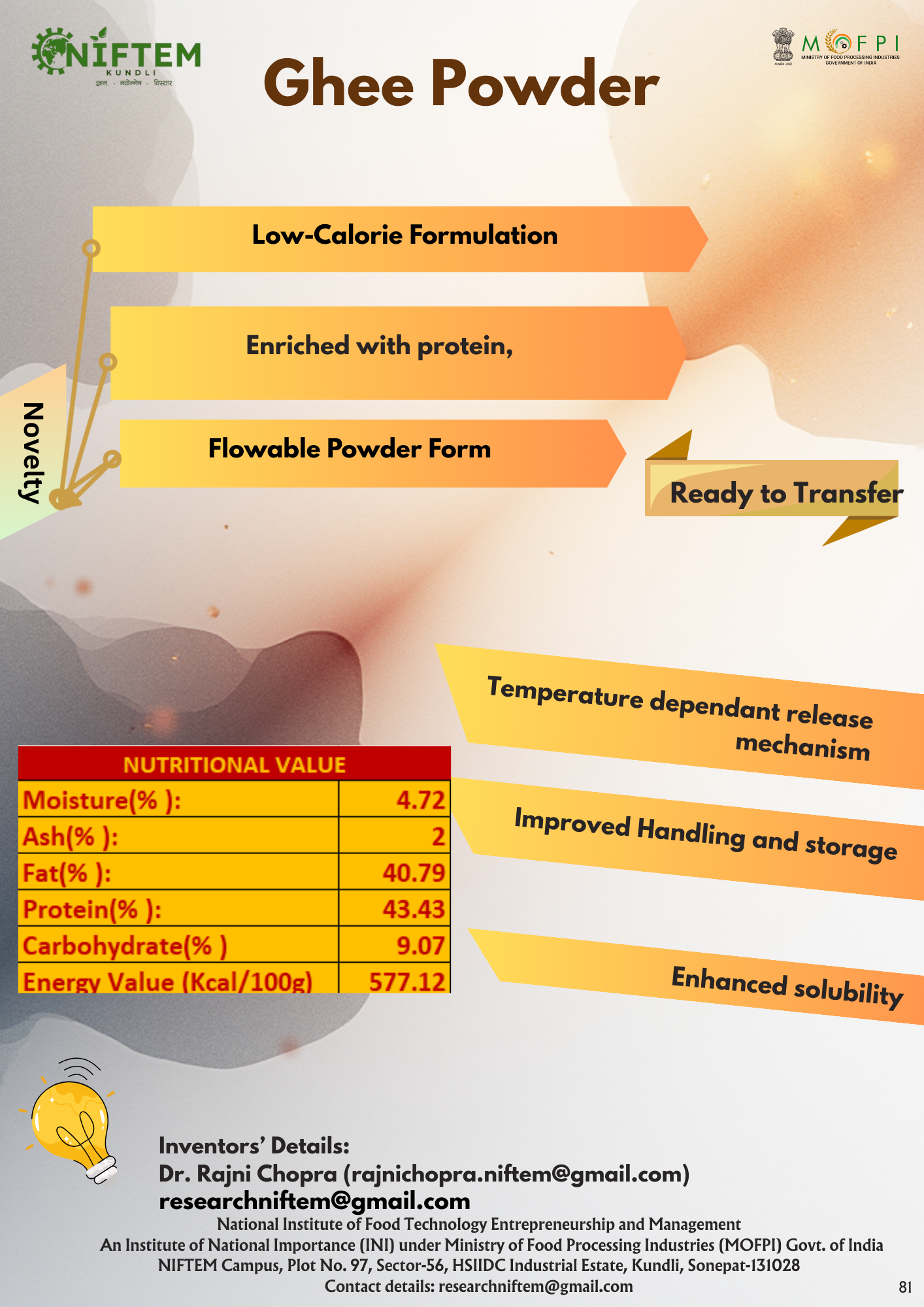 Using these know how & Manufacturing in NIFTEM Pilot Plants