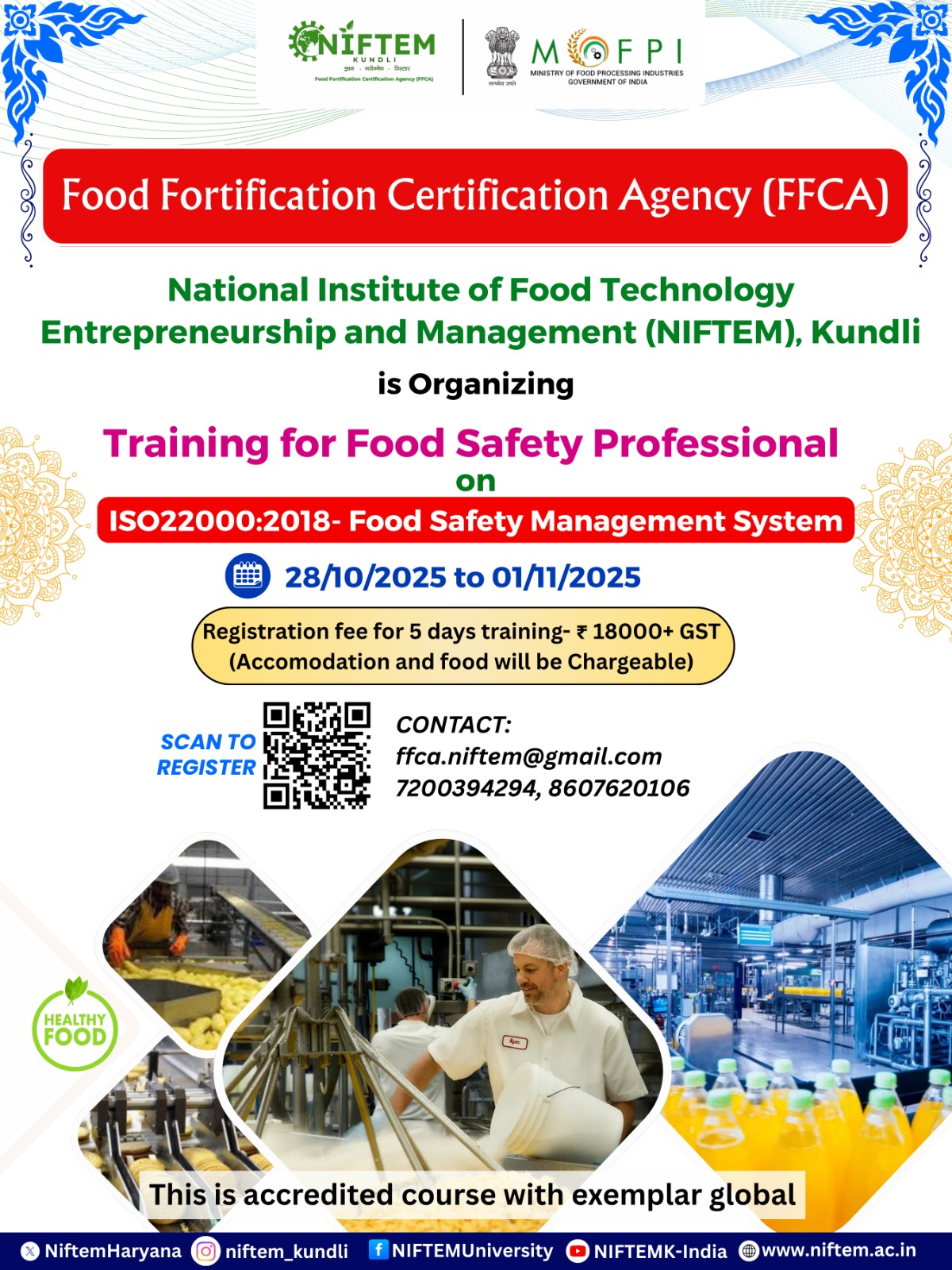 "Our Mission is to transform NIFTEM to IIFTEM (International Institute of Food Technology Entrepreneurship and Management) through creating entrepreneurship among the students, farmers, FPOs, rural and urban youth."